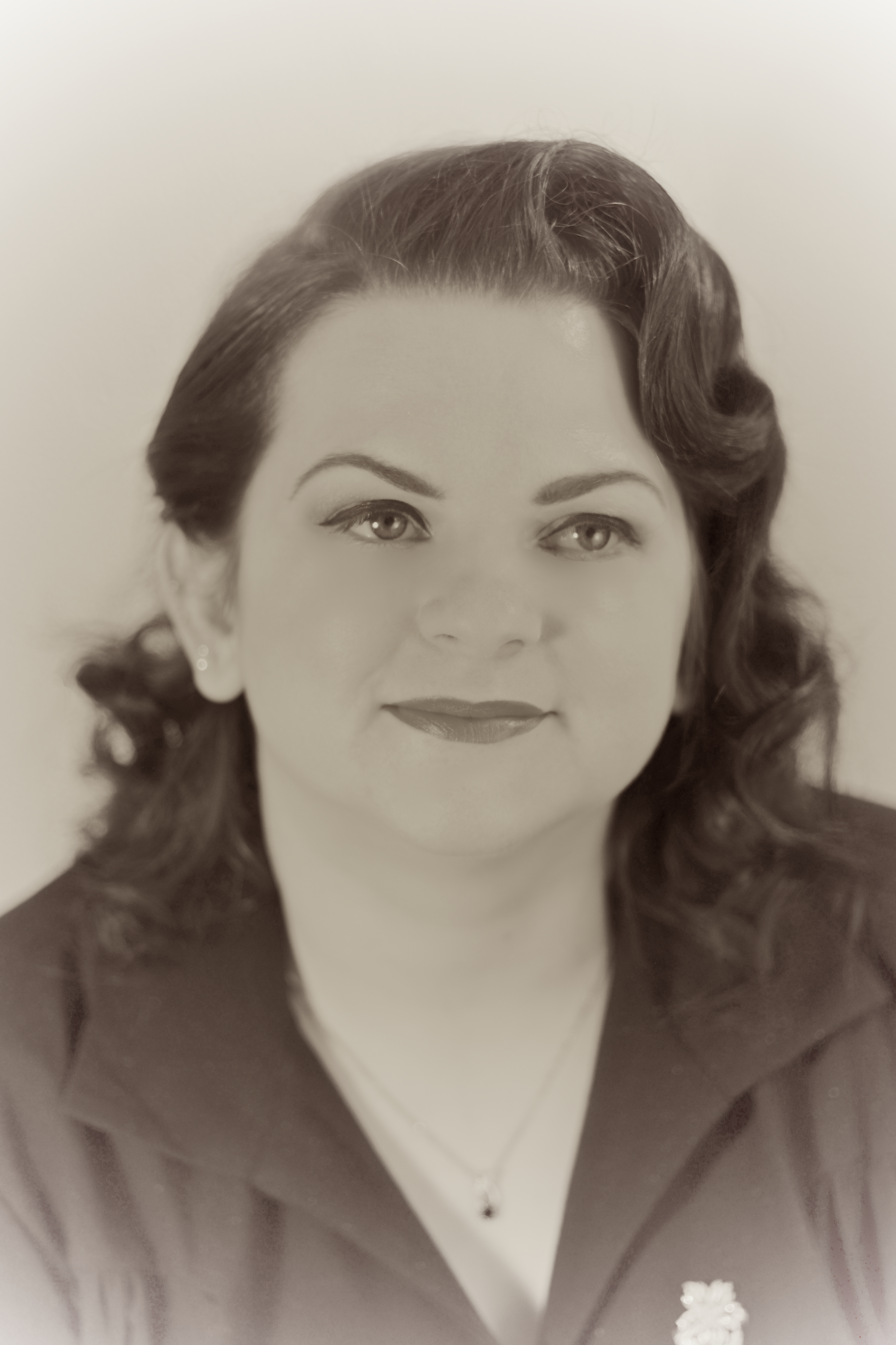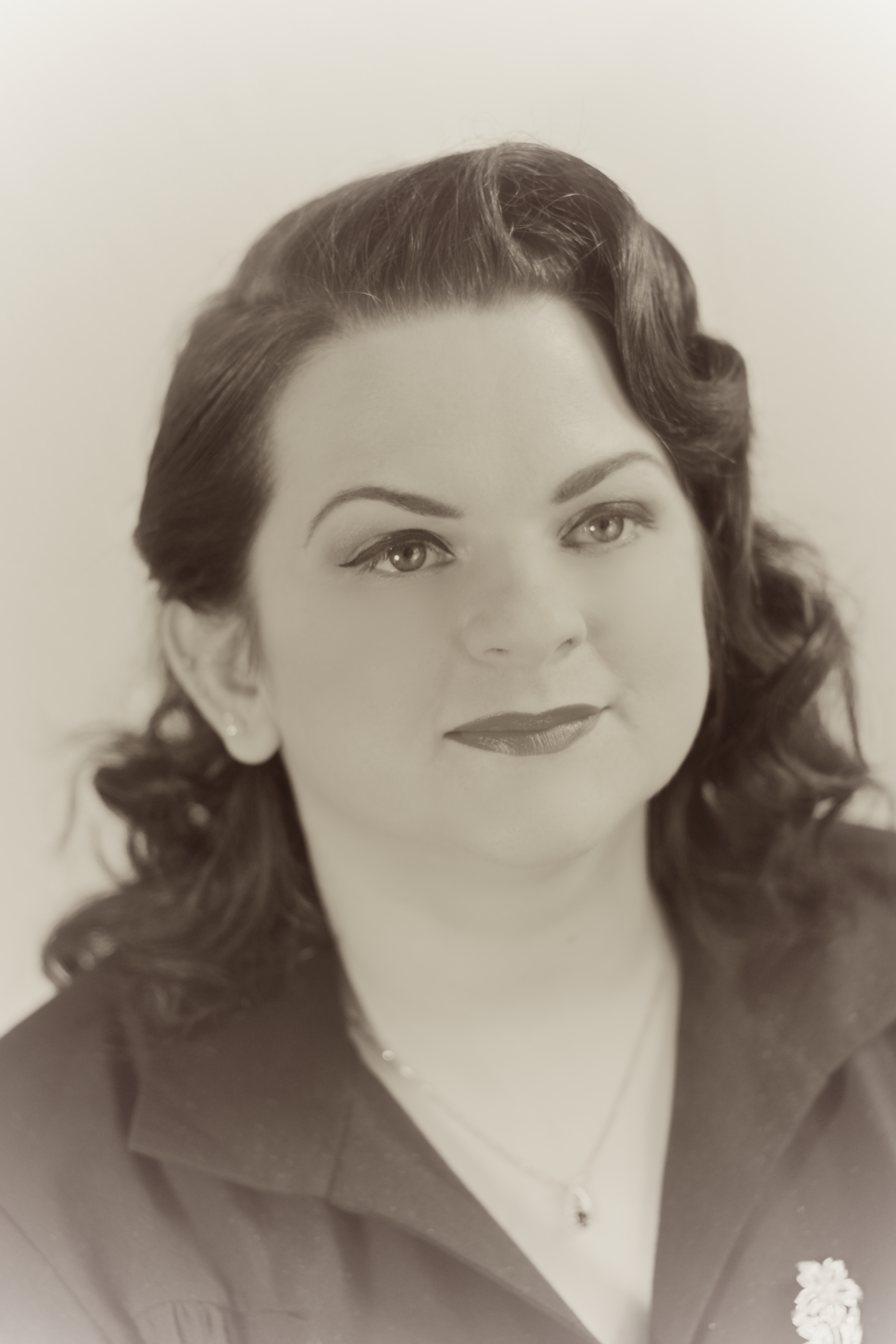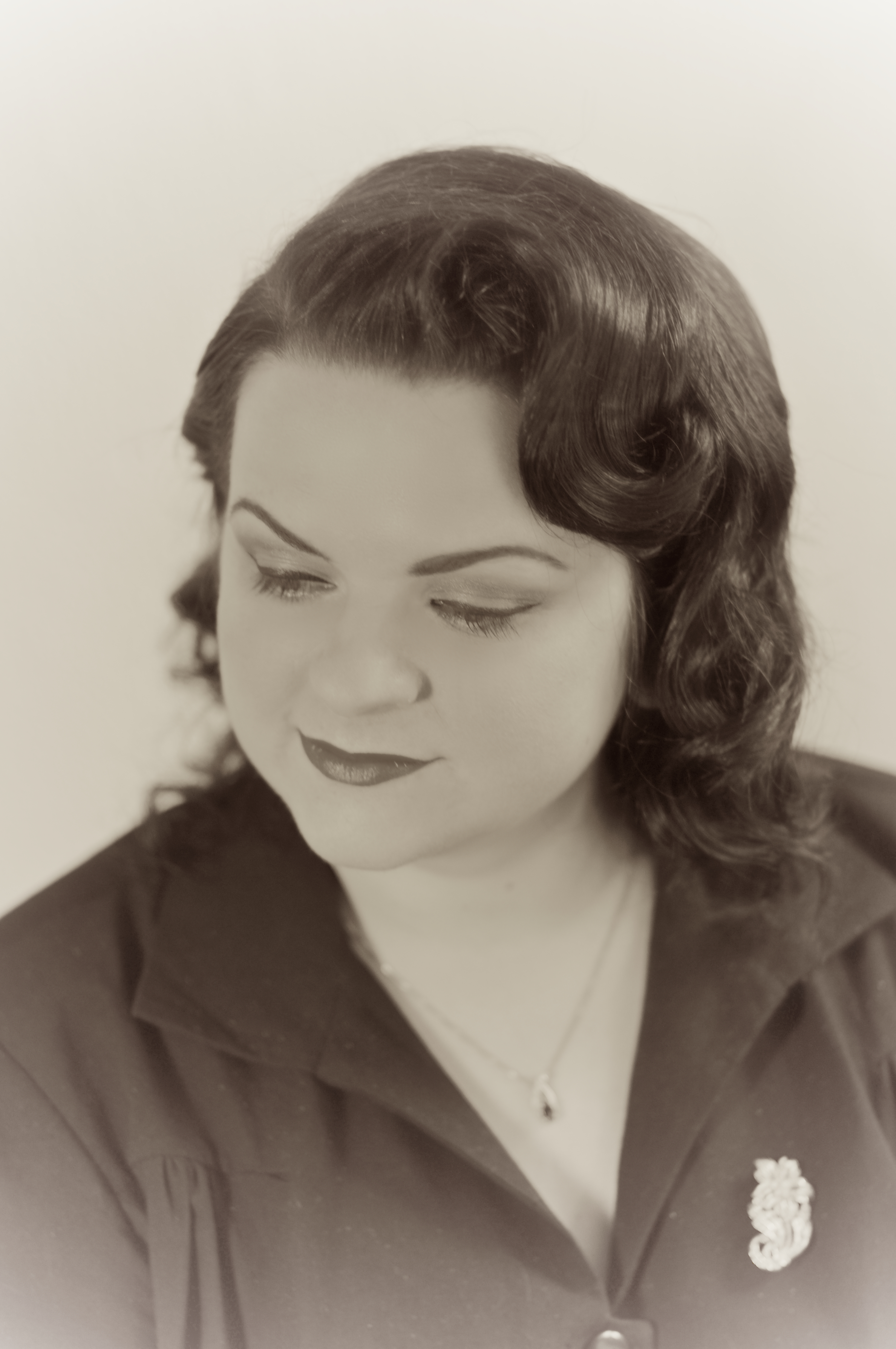 But between the two of them, I think they did a pretty good job with what they had to work with (my face). In case you’re wondering, the dress is from Vivien of Holloway, and the brooch is vintage: