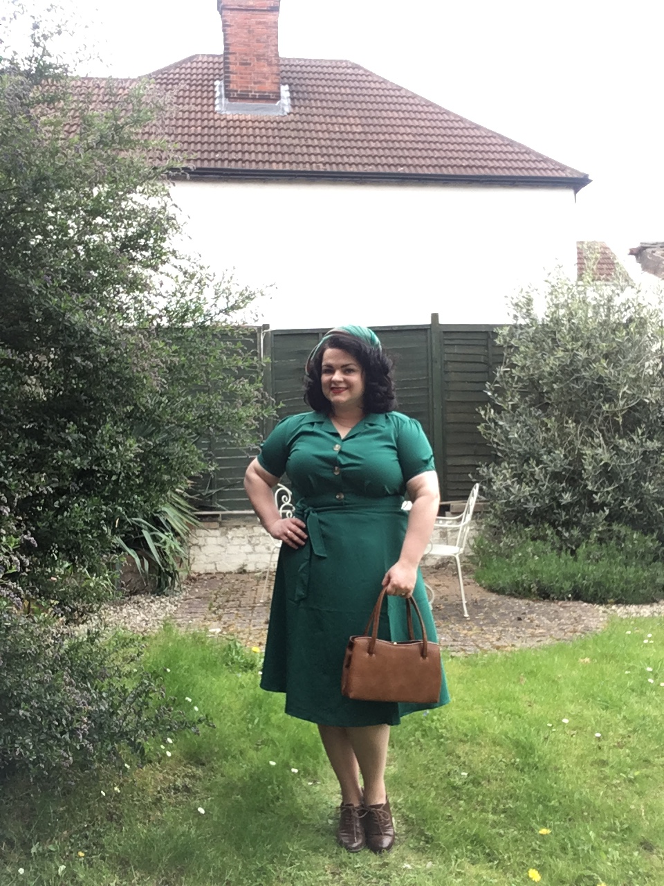 The colour of the dress is better than these photos show – it’s a real emerald green and gives a classic 40s silhouette, so that inspired me when it came to choose what accessories to pair with it.